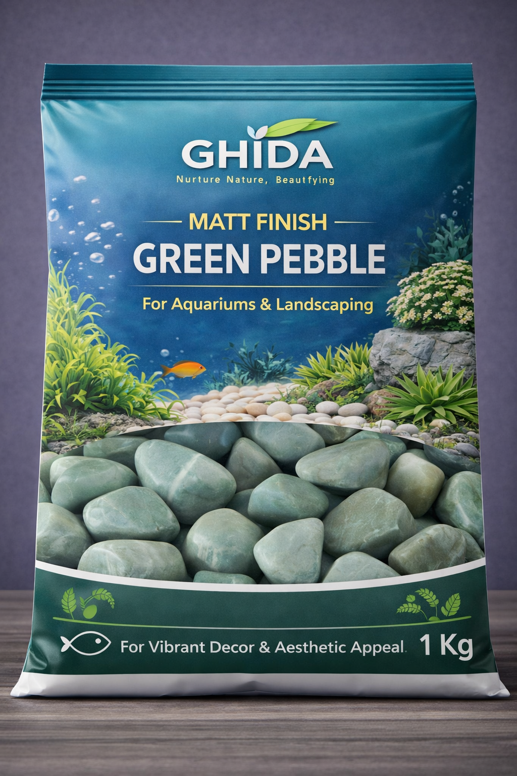 Ghida Matte Finishe Green Pebbles For Aquarium and Home Gardening